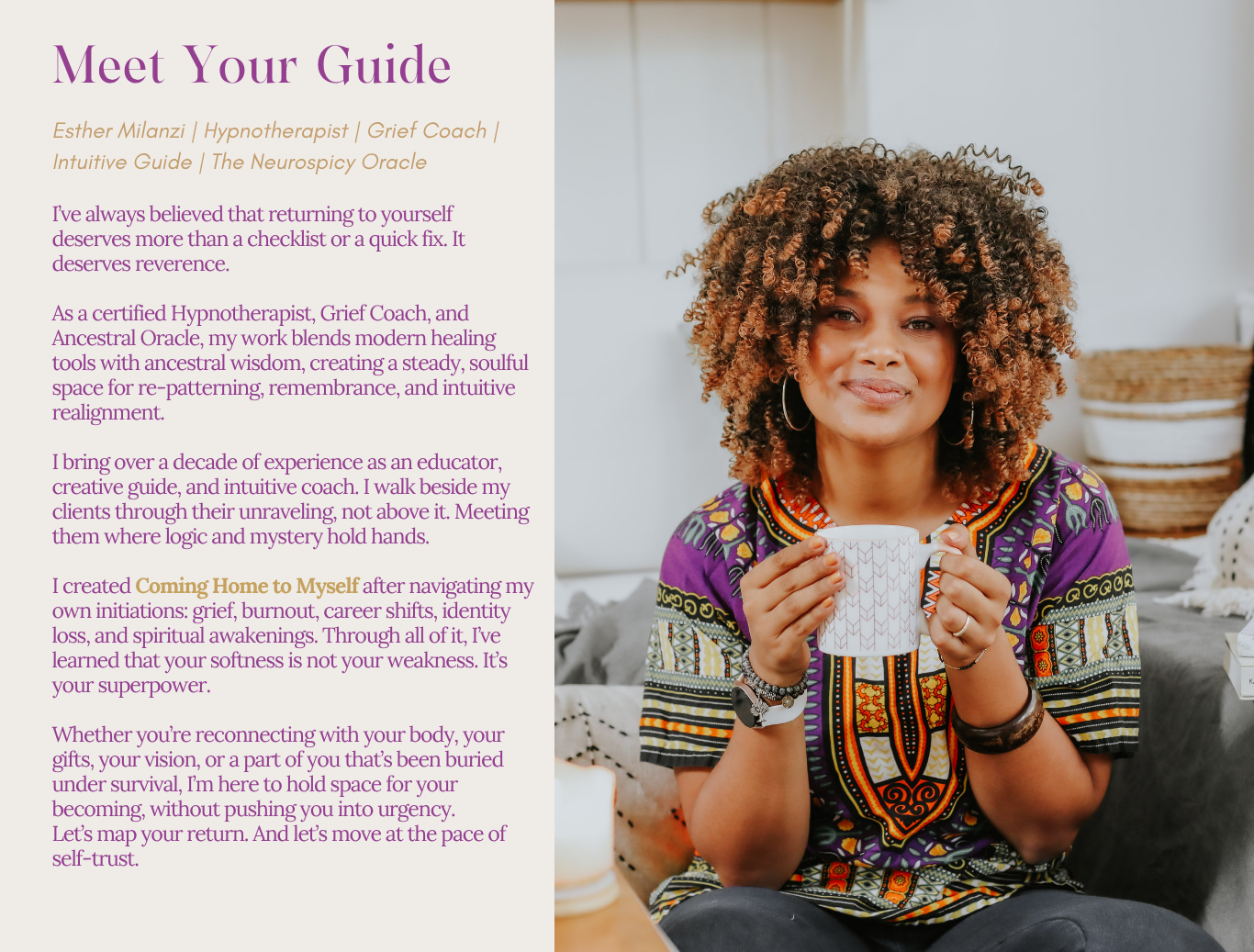 I am a “retired” yoga teacher, life coach, “professional organizer”, author and creative. Even with all my experience and inner knowledge of how to help others, Esty has a way of holding a space of calm for you while also taking you directly home to a more supportive approach with your goals and intentions. I loved the way this workshop gave me space to see the many areas of my life that are flowing while gently highlighting areas I can tend to when I’m ready.