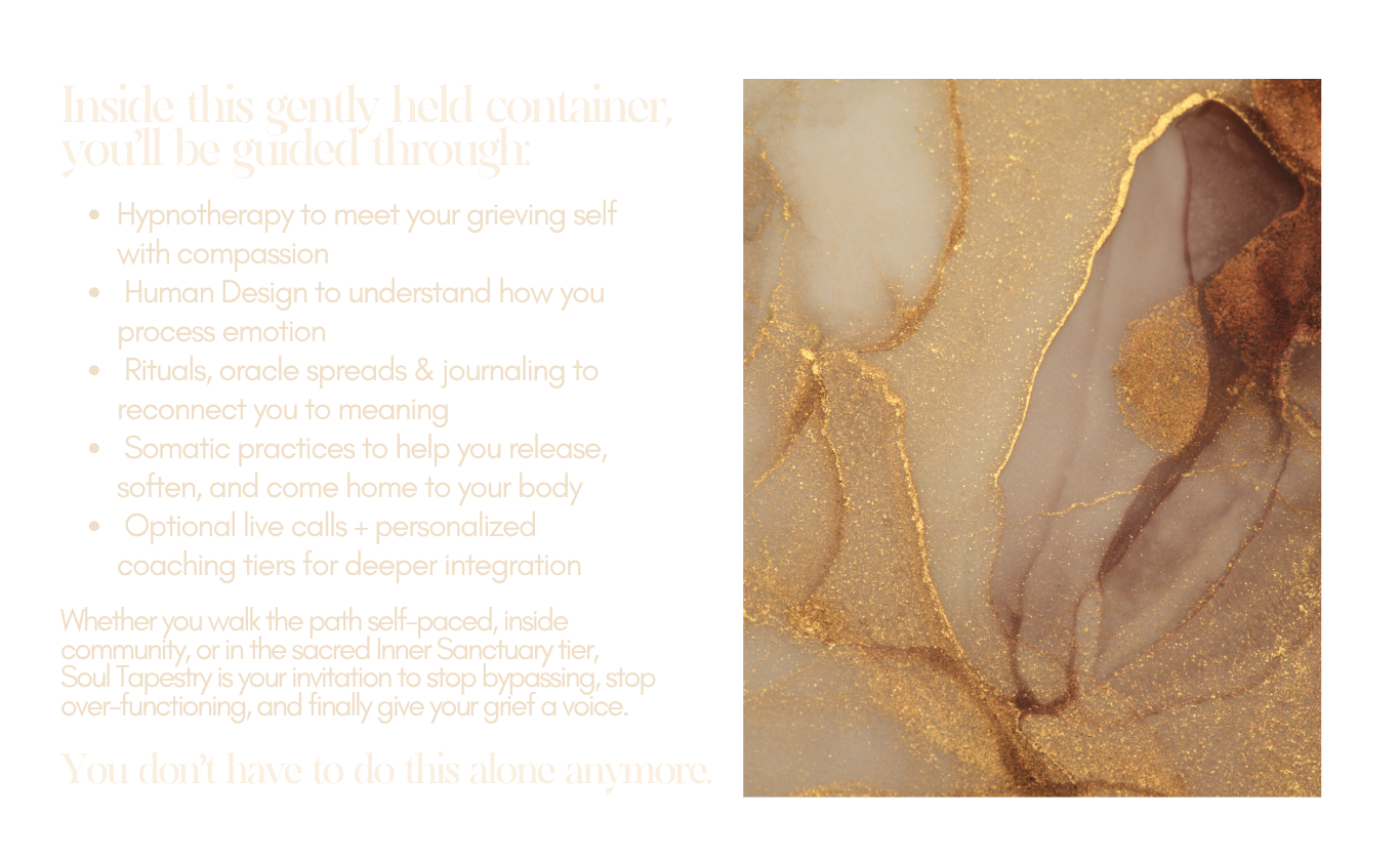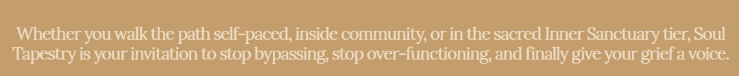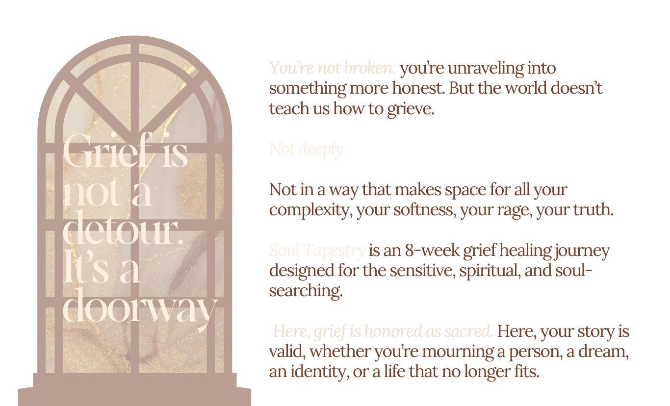 I created Soul Tapestry after experiencing the depth of my own grief transformations, losses of identity, relationships, careers, and versions of self that no longer fit. In each thread of pain, I found a thread of truth. And I want that for you too.