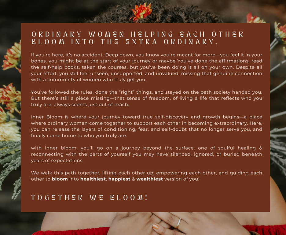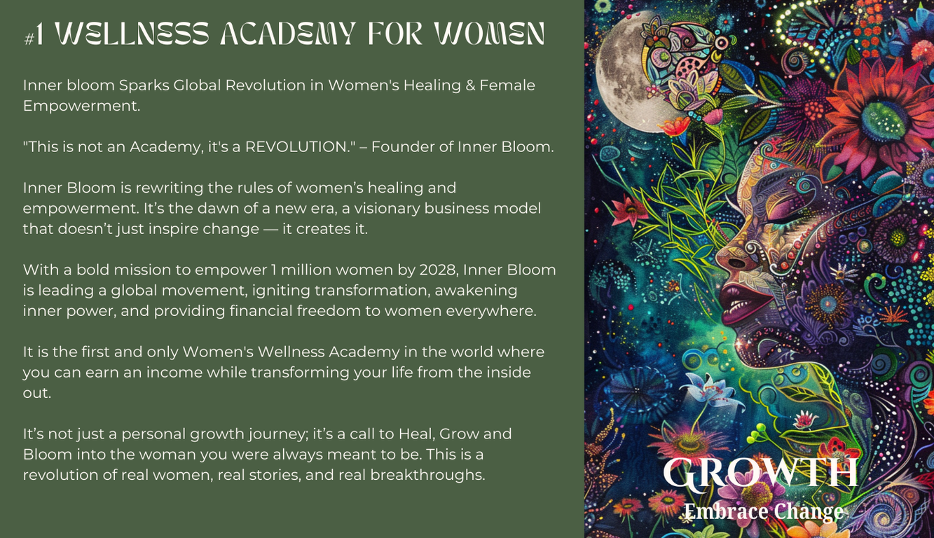Inner Bloom is the number 1 WOMEN’s ONLY Wellness Academy, and it’s rewriting the rules of women's healing and empowerment. With a bold mission to empower 1 million women by 2028, Inner Bloom is leading a global movement, igniting transformation, awakening inner power, and providing financial freedom to women everywhere.